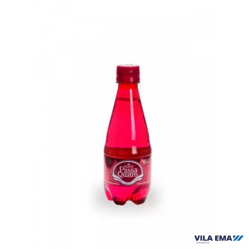 Água Passa Quatro com gás. Gaseificada mediante o método de injeção de gás carbônico, a Passa Quatro com Gás dispensa a utilização de sódio em seu envasamento, o que mantém intactas as características minerais e naturais da água, garantindo seu caráter saudável e assegurando a mais alta qualidade da bebida.